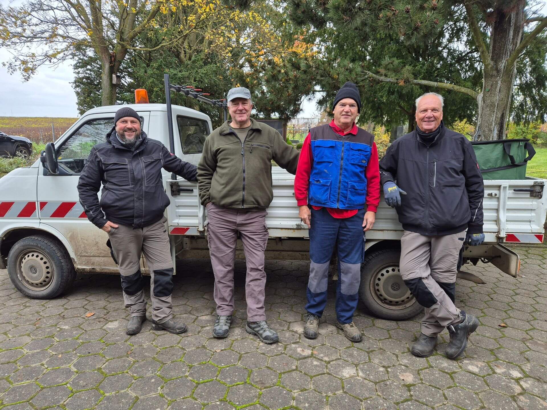 Von links nach rechts: Jan Defort Gemeindepfleger, Dedlef Mörmann und Philipp Merz vom Team "Old but Gold" sowie Dieter Frerk Gemeindepfleger .